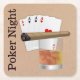Maskuliner Untersetzer aus Pulpboard, mit einer Grafik von einem Highball-Drink, Zigarre, einer Kartenhand von vier Asse, Set auf braunem Papier Hintergrund. Poker Night in fett schwarz und rot, läuft die links Seite des Untersetzer hoch. Personalisieren Sie den Text, um zu lesen, was Sie gewollt haben.