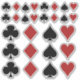 Diese Sammlung von 28 ausgeschnittenen Aufklebern umfasst Diamanten, Herzen, Clubs und Pik - alle Symbole aus einem Kartenspiel. Diese sind perfekt für einen Poker Spieler / begeisterten Spieler, einen Ausflug nach Las Vegas oder ein Vegas-Party. Die Anzüge sind in zwei Größen in Rot und Schwarz gehalten. Es gibt 12 größere und 16 kleinere Aufkleber. Wählen Sie Ihre eigene Aufklebergröße aus.