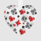 Grauer, texturierter Hintergrund mit polygonalen Spielkarten-Symbolen. Symbole für Spielkarten, Herz, Diamant, Pik und Club.