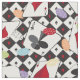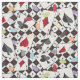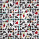 Ein Stoff mit einem Poker Kartenspiel Thema. Vier Anzug Schachbrett gemusterter Hintergrund mit allen vier Ace-Karten und Poker-Spielchips oben geworfen. Ein lustiges Kartendesign, das perfekt für jeden ist, der klassische Kartenspiele liebt. Sie können das Muster auf dem Stoff größer oder kleiner machen.