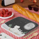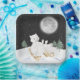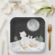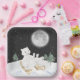 Niedlicher Aquarellbär auf einer Schlitte mit Vollmond und Schneeflocke auf schwarzem Hintergrund. Die Hintergrundfarbe kann geändert werden.
