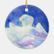 Dieses Weihnachtsschmuck schmückt ein wunderschönes Aquarellbild eines Eisbären auf einer eisigen Landschaft. Vielleicht will du es das ganze Jahr lang behalten!