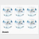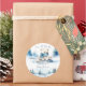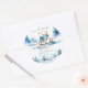 Polar Bären arktischen Winter können wir frühzeitig warten Baby Dusche Dank Ihnen bevorzugen Aufkleber, Aquarellfarbe niedlich polare Teddy Bär mit einem blauen Schal sitzend auf Eisfelsen Schneekiefern Winterthematische Babydusche Dankeschön an Geschenksticker