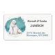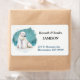 Dieses einzigartige Retourenlabel zeigt ein atemberaubendes Aquarellbild eines Eisbären, der in einer schneeblauen Nacht im Schnee sitzt. Die vorherrschenden Farben sind blau, aquamarin, grau und weiß. Ihr eigener Text ist rechts in Schwarz und Blau.