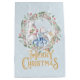 Wunderschöne Weihnachtsgeschenktüte mit unserem Trio von Eisbären in einem Weihnachtskranz und kühnen, goldenen Schriften, die dem Empfänger ein frohes Weihnachtsfest ganz unten wünschen.