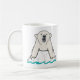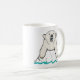 Der Polar Bär zeigt einen zeichn eines Eisbären, der an einem Schmelteis hängt, das im kalten arktischen Meer schwimmt. Eine Botschaft des Klimawandels über die zerbrechliche Umgebung des Eisbären und ein ansprechendes Bild dieses großartigen Raubtiers.