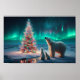 Polar Bear Mama Cubs Weihnachtsbaum Aurora Boreali Poster