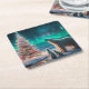 Polar Bear Mama Cubs Weihnachtsbaum Aurora Boreali Rechteckiger Pappuntersetzer
