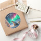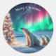 Polar Bear Mama Cubs Weihnachtsbaum Nordlichter Runder Aufkleber