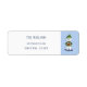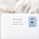 Einige niedliche, weiße und hellblaue Holiday Rücksendeadressen-Aufkleber mit einem Eisbär, der Geschenke trägt. Personalisieren Sie sie mit Ihrem Familiennamen und Ihrer Adresse . © ArianeC Illustrations-Alle Rechte vorbehalten