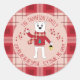 Ein niedlicher Weihnachts-Rundaufkleber mit karierter roter Grenze . Im Inneren haben Sie einen Cartoon mit einem leichten und wehenden Bären, sowie ein paar Zweige mit heiligen Beeren . Verwenden Sie die Vorlage, um sie mit Ihrem Namen und Ihrer Adresse zu personalisieren. Einfach perfekt, um als Umschlag Aufkleber auf all Ihrer Holiday Mail . © ArianeC Illustrations-Alle Rechte vorbehalten
