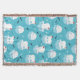Playful polar bears in Santa hats float on icy blue seas surrounded by igloos, fish, and snowflakes. A cool Christmas favorite.