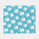 Playful polar bears in Santa hats float on icy blue seas surrounded by igloos, fish, and snowflakes. A cool Christmas favorite.