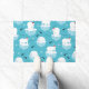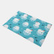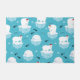 Playful polar bears in Santa hats float on icy blue seas surrounded by igloos, fish, and snowflakes. A cool Christmas favorite.