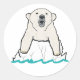 Der Polar Bär zeigt einen zeichn eines Eisbären, der an einem Schmelteis hängt, das im kalten arktischen Meer schwimmt. Eine Botschaft des Klimawandels über die zerbrechliche Umgebung des Eisbären und ein ansprechendes Bild dieses großartigen Raubtiers.