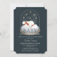 Dieses skurrile " Baby Seine Kälte draußen " Gender neutrale virtuelle Babydusche Einladung verfügt über eine Schneekugel mit Eisbären unter dem Sternenhimmel mit Schnee. Es gibt einen Mama Eisbär und einen Eisbärenkub auf einem dunkelblauen / marineblauen Hintergrund mit Imitaten, die goldglänzende Sterne und Schnee glitzern. Auf der Rückseite ist ein hellblau-weißer Hintergrund mit Polarbären-, Beeren- und Blätter-Mustern erkennbar. Personalisieren Sie es für Ihre Bedürfnisse. In meinem Geschäft finden Sie passende Produkte.