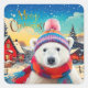 Polar Bear Weihnachtsmannmütze und Schal Frohe Wei Quadratischer Aufkleber