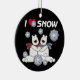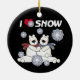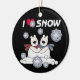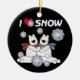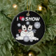Zwei Eisbären umarmen, während Schneeflocken fallen und der Text "I Liebe Snow" auf Keepsensurferien-Ornamenten lautet, die Sie vor der Bestellung ändern können!