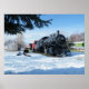 Alte Dampflokomotive und schneebedeckte Landschaft - Eisenbahnmuseum, Tooele, ABER