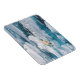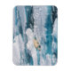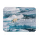 Dieses Foto zeigt einen Eisbären auf farbigem, schwerem Eis, das im Wasser schwimmt.