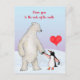 Eisbären und Pinguine leben an den gegenüberliegenden Enden der Erde, aber diese beiden Freunde haben sich mit einer besonderen Botschaft für einen geliebten Kerl zusammengetan