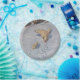 Dieses Design zeigt ein Gemälde des deutschen Künstlers Richard Friese (1854-1918). Es zeigt eine Familie von Eisbären, die durch den Schnee gehen: es gibt ein Elterntier und zwei Kinder. Die Fußabdrücke der Eisbären sind in der verschneiten Landschaft zu sehen. Das cremefarbene Fell der Eisbären hebt sich vom blau-weißen Schnee ab.