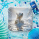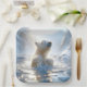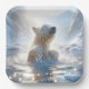 Ein Eisbär spritzt fröhlich in eiseres Wasser, umgeben von Sonnenlicht und schneebedeckten Bergen