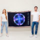 Ein helles lila und blaues Fraktal, das auf den Nordstern (Polaris) und die Nordlichter hinweist. Das Bild wird auf einem sternförmigen Hintergrund überlagert. Fügen Sie Ihren eigenen Text hinzu.