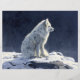 Ein wunderschöner, weißer, arktischer Fuchs, der in einem schneebedeckten Wunderland sitzt, eine ruhige Szene, die in einem Ölgemälde auf einem malerischen Scrapbook-Papier eingefangen wurde. Ideal, um als Kunstwerk zu sammeln oder in Ihr Handwerk zu integrieren, wie z.B. Scrapbooking.