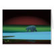 Ein Eisbär wandert in der langen Polarnacht durch das Eis; die Nordlichter in rot und grün leuchten in der Ferne.
