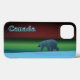 Ein Eisbär wandert in der langen Polarnacht durch das Eis; die Nordlichter in rot und grün leuchten in der Ferne. Der Text mit "Kanada" erscheint auch in leuchtendem Blau und Weiß.