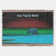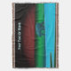 Ein Eisbär wandert in der langen Polarnacht durch das Eis; die Nordlichter in rot und grün leuchten in der Ferne. Fügen Sie Ihren eigenen Text hinzu.
