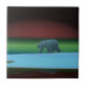 Ein Eisbär wandert in der langen Polarnacht durch das Eis; die Nordlichter in rot und grün leuchten in der Ferne.