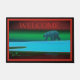 Ein Eisbär wandert in der langen Polarnacht durch das Eis; die Nordlichter in rot und grün leuchten in der Ferne. Text lesen, "WELCOME" erscheint auch. Eisbären sind stark gefährdet. Wie lange werden solche Szenen noch stattfinden können? Helfen Sie bitte, Polarbären vom Aussterben retten.
