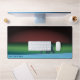 Ein Eisbär wandert in der langen Polarnacht durch das Eis; die Nordlichter in rot und grün leuchten in der Ferne. Passen Sie Ihren eigenen Text an.
