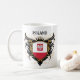 Cooler Wappenentwurf mit polnischen Farben der nationalen Flagge. Ersetzen Sie Text "Polen" durch Ihren eigenen Slogan, um ein einzigartiges personalisiertes polnisches Stolzgeschenk herzustellen. Personalisierte Geschenkideen: #1 polnischer Vati, Mamma, Großvater, Großmutter, Onkel, Tante, Ehefrau, Ehemann, [anderes Familienmitglied]; Stolz, polnisch zu sein, Polen-Felsen.