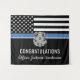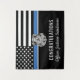 Dieses Design verfügt über eine Polizeiflagge mit schwarz-weißen Streifen und einen dünnen blauen Streifen. Passen Sie den Namen des im Ruhestand befindlichen oder schließend Vollzugsbeamten, Sheriffs, Kapitäns oder Chefs an. Ein guter Weg, um dem neuen Rentner oder Absolvent für ihren Ruhestand oder Abschluss von der Polizeiakademie zu gratulieren.
