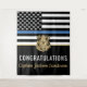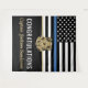 Dieses Design verfügt über eine Polizeiflagge mit schwarz-weißen Streifen und einen dünnen blauen Streifen. Passen Sie den Namen des im Ruhestand befindlichen oder schließend Vollzugsbeamten, Sheriffs, Kapitäns oder Chefs an. Ein guter Weg, um dem neuen Rentner oder Absolvent für ihren Ruhestand oder Abschluss von der Polizeiakademie zu gratulieren.