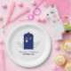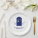 Die zarte und lustige Police Box Wedding Paper Teller mit einer brillant blauen Vintagen Polizei Box flankiert von wirlen Schnörkeln und blauen Sternen. Einfach zu anpassen, fügen Sie einfach Ihre Hochzeitsdetails in den Textfeldern zur Verfügung gestellt. Klicken Sie auf "Anpassen", um weitere Personalisierungsoptionen zu erhalten.
