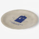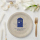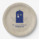 Die zarte und lustige Police Box Wedding Paper Teller mit einer brillant blauen Vintagen Polizei-Box flankiert von wirl Schnörkel und blauen Sternen auf einem Imitat Vintagen Papier Hintergrund. Einfach zu anpassen, fügen Sie einfach Ihre Hochzeitsdetails in den Textfeldern zur Verfügung gestellt. Klicken Sie auf "Anpassen", um weitere Personalisierungsoptionen zu erhalten.