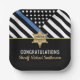 Ein guter Weg, um dem neuen Rentner oder Absolvent für ihren Ruhestand oder Abschluss von der Polizeiakademie zu gratulieren. Dieses Design verfügt über eine Polizeiflagge mit schwarz-weißen Streifen und einen dünnen blauen Streifen. Passen Sie den Namen des im Ruhestand befindlichen oder schließend Vollzugsbeamten, Sheriffs, Kapitäns oder Chefs an. Feiern Sie diesen Meilenstein im Stil!