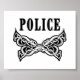 Polizeitätowierungen und grafische Plakate für Polizeibeamte und Polizistinnen sind mit phantastischer, schwarz-weißer, keltischer Tätowierung und dem Wort "Polizei" versehen.