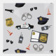 A hand drawn design featuring cute police themed illustrations. A cop themed design featuring illustrations of police car, police hat, police badge, handcuffs and more. An ideal design for anyone who loves police, police cars, cops and robbers illustrations. A perfect design for police themed parties, kids bedroom decor and personalized gifts.