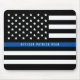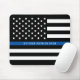 Show your support with this black and white police thin blue line American flag mouse pad. Personalize by replacing sample name with your own officer's name.