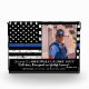 Ehre deinen geliebten Polizeibeamten und mit diesem Thin Blue Line Police Memorial Foto Geschenk. Personalisieren Sie Ihre Offiziere mit Foto, Name und Abzeichen Nummer und Daten . Zitat: Gut gemacht, du guter und treuer Diener. Matthew 25:23 . COPYRIGHT © 2020 Judy Burrows, Black Dog Art - Alle Rechte vorbehalten. Police Thin Blue Line Foto zur Strafverfolgung