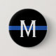 Diese Polizei dünne blaue Linie Taste hat einen horizontalen blauen Streifen auf einem schwarzen Hintergrund und ein Monogramm Initial in Weiß für Sie personalisieren.