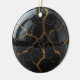 Die Kunst des Mengens: Eine polierte Obsidian-Kugel repariert mit Adern geschmolzenen Goldes, symbolisiert Kraft durch Heilung.