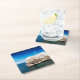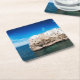 Untersetzer mit einem Fotodruck der Häuser errichtet auf einer Klippe im Mittelmeer in der Strandstadt Polignano eine Stute auf der Ostküste von Puglia im Süden von Italien an einem schönen Sommertag.