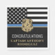 Dieses Design zeigt eine Polizeiflagge mit schwarzen und weißen Streifen und einem dünnen blauen Streifen. Eine großartige Möglichkeit, dem neuen Rentner oder Absolventen zur Pensionierung oder zum Abschluss von der Polizeiakademie zu gratulieren. Anpassen mit dem Namen des ausscheidenden oder abschließenden Polizeibeamten, Sheriffs, Hauptmanns oder Chefs. Feiern Sie diesen Meilenstein stilvoll!