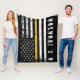 Ein individueller Name beunruhigte dünne Linie Flaggen-Fleecedecke Gold der Art. Die dünne Goldlinie, die über die gesamte Fleecedecke läuft, ist Vertreter des Polizei-Versands und 911 Betreiber. Folgen Sie den Richtungen in den Sidebar, um einen Namen zu addieren und ihn unter die Flagge perfekt schauen zu lassen.